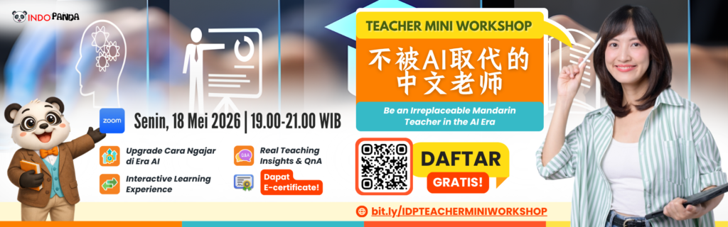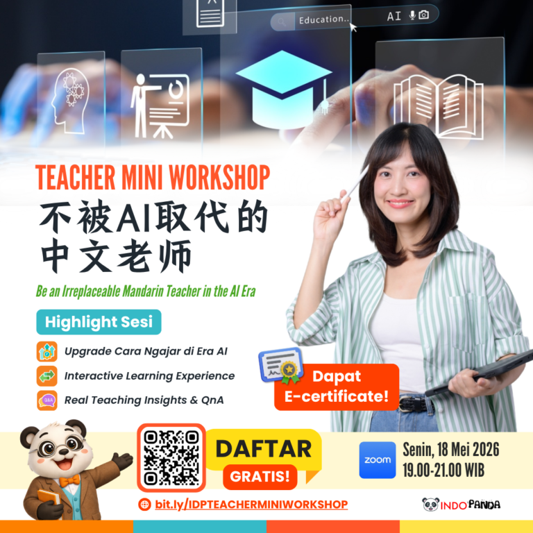 Khusus buat Laoshi! Menurut kamu, AI itu teman atau lawan? Kali ini IndoPanda akan bahas bagaimana Mandarin Teacher menyikapi perkembangan AI di zaman yang berkembang ini dan menjadi Laoshi yang nggak tergantikan! Penasaran? Amankan tempatmu!
