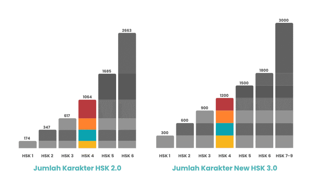 Nah, New HSK 3.0 memperbaiki ketimpangan ini dengan menata ulang jumlah kosakata dan karakter di setiap level.