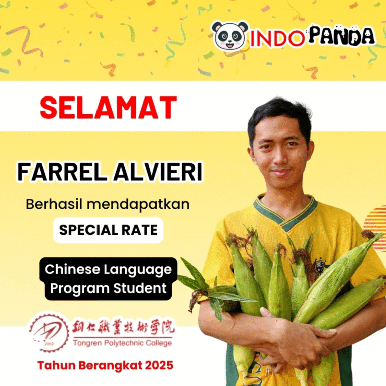 Farrel Alvieri pertama kali mengenal IndoPanda lewat seminar di Surabaya pada Oktober 2024 bersama teman-temannya. Ia tertarik belajar bahasa, termasuk Mandarin, dan ingin melanjutkan studi di China karena melihat peluang karier yang semakin terbuka untuk talenta berbahasa Mandarin di Indonesia.