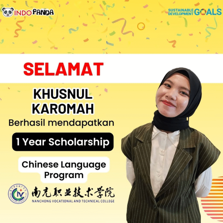 Meski sempat belajar Mandarin secara mandiri dan HSK 3-nya belum lulus sesuai target, Khusnul tetap konsisten mengikuti program FTMO (Fast Track Mandarin Online) IndoPanda. Berkat pendampingan tim IndoPanda, ia mendapat informasi tepat waktu mengenai program terbatas di Nanchong, dan kemampuannya yang sudah mulai terlihat di FTMO membuatnya unggul saat interview. Hasilnya, Khusnul diterima di Nanchong University, dan kini telah kembali ke Indonesia dengan pekerjaan yang lebih baik di Jakarta.