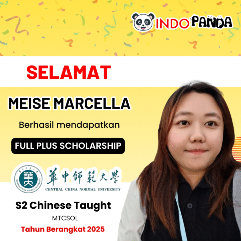 Perjalanan Meise tidak selalu mulus, dari surat rekomendasi yang tertunda, kesalahan penulisan nama di aplikasi beasiswa, hingga masalah visa karena situasi Jakarta saat itu yang kurang kondusif. Semua kendala tersebut berhasil diatasi berkat pendampingan tim IndoPanda yang membantu koordinasi dengan kampus, pengajuan dokumen, dan persiapan HSK. Akhirnya Meise bisa berangkat dan kini sedang menempuh pendidikan di CCNU, membuktikan bahwa dukungan tepat dapat menemukan solusi bahkan di situasi paling tak terduga.
