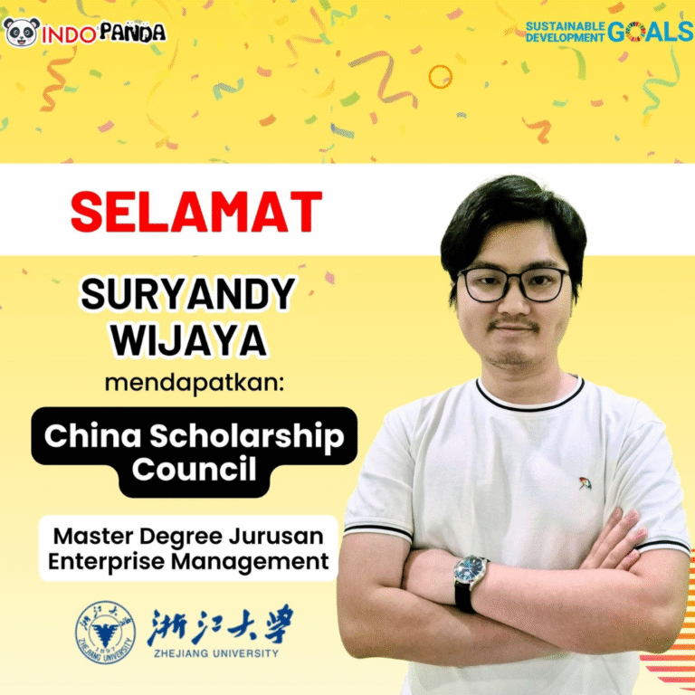 Selama masa menunggu ini, tim IndoPanda membantu membuat backup plan untuk meningkatkan peluang penerimaan dan terus memberikan update secara berkala, menjaga komunikasi dan kepercayaan antara siswa dan tim. Hasilnya, Suryandy berhasil meraih CGS Scholarship dan kini sedang menempuh studi di Zhejiang University, pilihan pertamanya, membuktikan bahwa kesabaran dan pendampingan yang tepat bisa membawa hasil yang diinginkan.